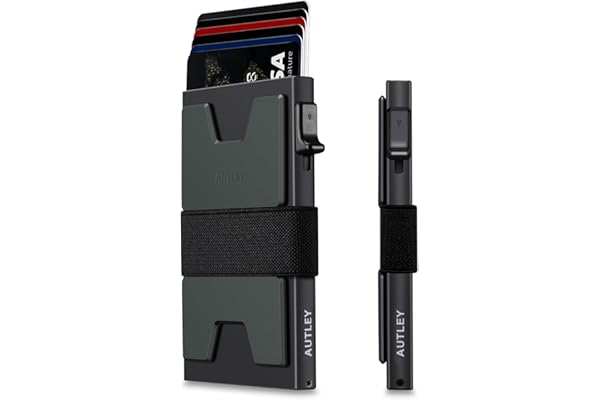 #1:AUTLEY Slim Card Holder, Minimalist Pop Up Wallet for Men, RFID Blocking Mens Wallet with Cash Band (Black)