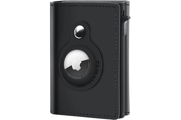 #1:GAOCHALE AirTag Wallet Genuine Leather Air Tag Wallet RFID Technology Credit Card Holder with Minimalist Wallet for Men for Apple AirTag (No Airtag Included)(Black)