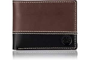 #1:Timberland Men's Leather Passcase Trifold Wallet Hybrid, Brown/Black, One Size