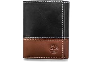 #1:Timberland Men's Leather Trifold Wallet with Id Window, Black/Brown (Hunter), One Size